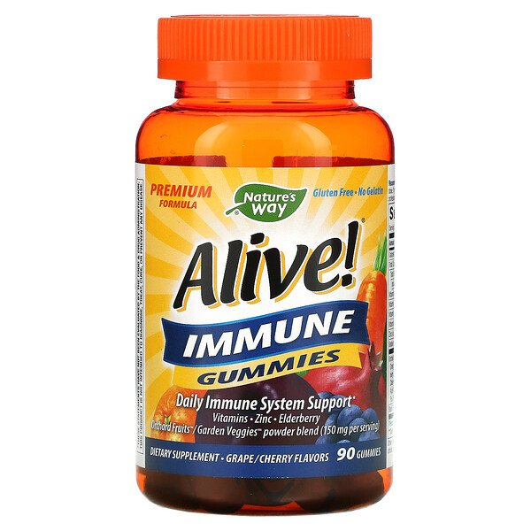 Nature's Way, Alive! жевательная добавка для укрепления иммунитета, со вкусом винограда/вишни, 90 жевательных таблеток