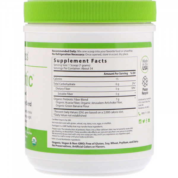 Hyperbiotics, Prebiotic, органическая патентованная смесь, 375 г