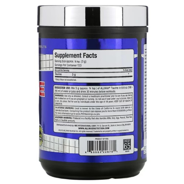 ALLMAX Nutrition, Таурин, без добавок, веганский продукт без глютена, 3000 мг, 400 г