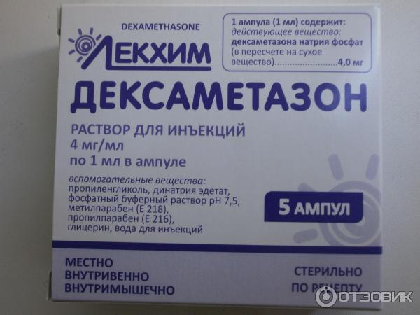 активное вещество: дексаметазона натрия фосфат (в пересчете на дексаметазона фосфат) - 4 мг;