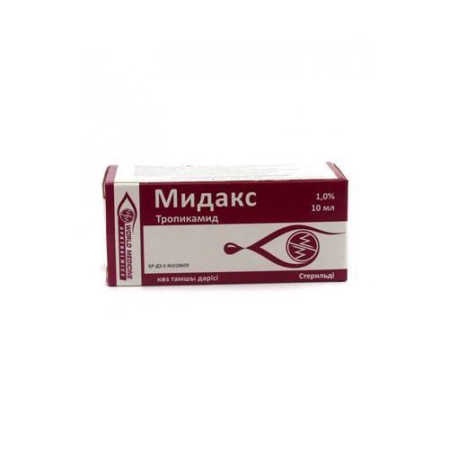 Мидакс - антихолинергическое средство, блокирует М-холинорецепторы сфинктера радужки и цилиарной мышцы, вызывая кратковременный мидриаз и паралич аккомодации.