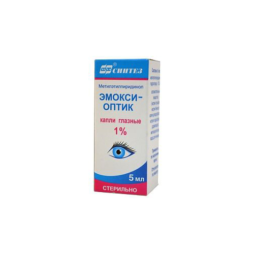 Эмокси-оптик - антиоксидант (лекарственное средство, препятствующее перекисному окислению липидов клеточных мембран), обладающий ангиопротекторной (повышающей устойчивость сосудов), антиагрегационной (препятствующей склеиванию тромбоцитов) и антигипоксической (повышающей устойчивость ткани к нехватке кислорода) активностью. Уменьшает проницаемость капилляров и укрепляет сосудистую стенку (ангиопротектор). Уменьшает вязкость крови и агрегацию тромбоцитов (антиагрегант). Ингибитор свободнорадикальных процессов, обладает мембраностабилизирующим действием. Обладает ретинопротекторными свойствами, защищает сетчатку и другие ткани глаза от повреждающего действия света высокой интенсивности. Способствует рассасыванию внутриглазных кровоизлияний, снижает свертываемость крови, улучшает микроциркуляцию глаза. Стимулирует репаративные процессы в роговице (в т.ч. в раннем послеоперационном и постраневом периоде).