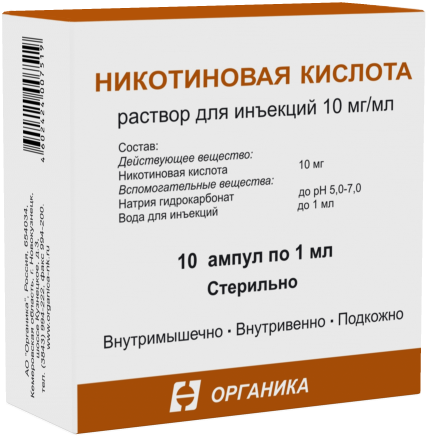 - Действующее вещество: Никотиновая кислота