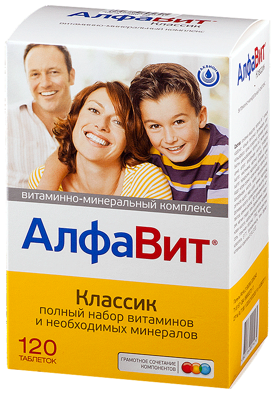 АЛФАВИТ Классик – первый в мире витаминно-минеральный комплекс, созданный с учетом научных рекомендаций по раздельному и совместному приему полезных веществ. АЛФАВИТ не просто содержит все необходимые витамины и минералы. Каждая таблетка включает лишь сочетающиеся компоненты. Это обеспечивает наиболее полное их усвоение и гипоаллергенность комплекса в целом. Каждая из трех таблеток АЛФАВИТА Классик – это самостоятельный сбалансированный витаминно-минеральный препарат, который оказывает определенное, четко выраженное воздействие на организм.