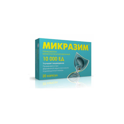 МИКРАЗИМ® пищеварительное ферментное средство, восполняет дефицит ферментов поджелудочной железы, оказывает липолитическое, протеолитическое, амилолитическое действие.