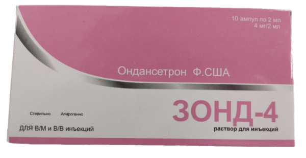 Зонд-4 высокоселективно блокирует центральные (хеморецепторы триггерной зоны, рвотный центр) и периферические серотониновые 5-HT3-рецепторы. Блокируя 5-HT3-рецепторы, ондансетрон предупреждает возникновение рвотного рефлекса. Кроме того, ондансетрон угнетает центральные звенья рвотного рефлекса, блокируя 5-HT3-рецепторы дна IV желудочка.