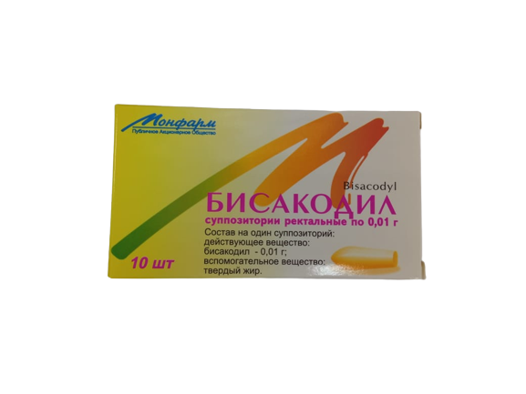 Бисакодил – производное дифенилметана является слабительным, ветрогонным средством. Механизм действие обусловлен прямой стимуляцией нервных окончаний слизистой оболочки толстой кишки, повышая продукцию слизи в толстой кишке, что приводит к размягчению кала, улучшению его скольжения, способствуя акту дефекации, а также ускорением и усилением перистальтики кишечника.