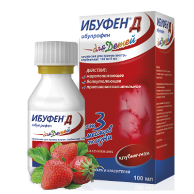 Ибуфен Д летский 100 мг / 5 мл 120 мл суспензия ( клубника , малина , без вкуса)