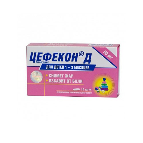 Цефекон® Д суппозитории ректальные для детей 50 мг. По 5 суппозиториев в контурной ячейковой упаковке; две контурные ячейковые упаковки вместе с инструкцией по медицинскому применению препарата помещают в картонную пачку. В упаковке 10 шт.