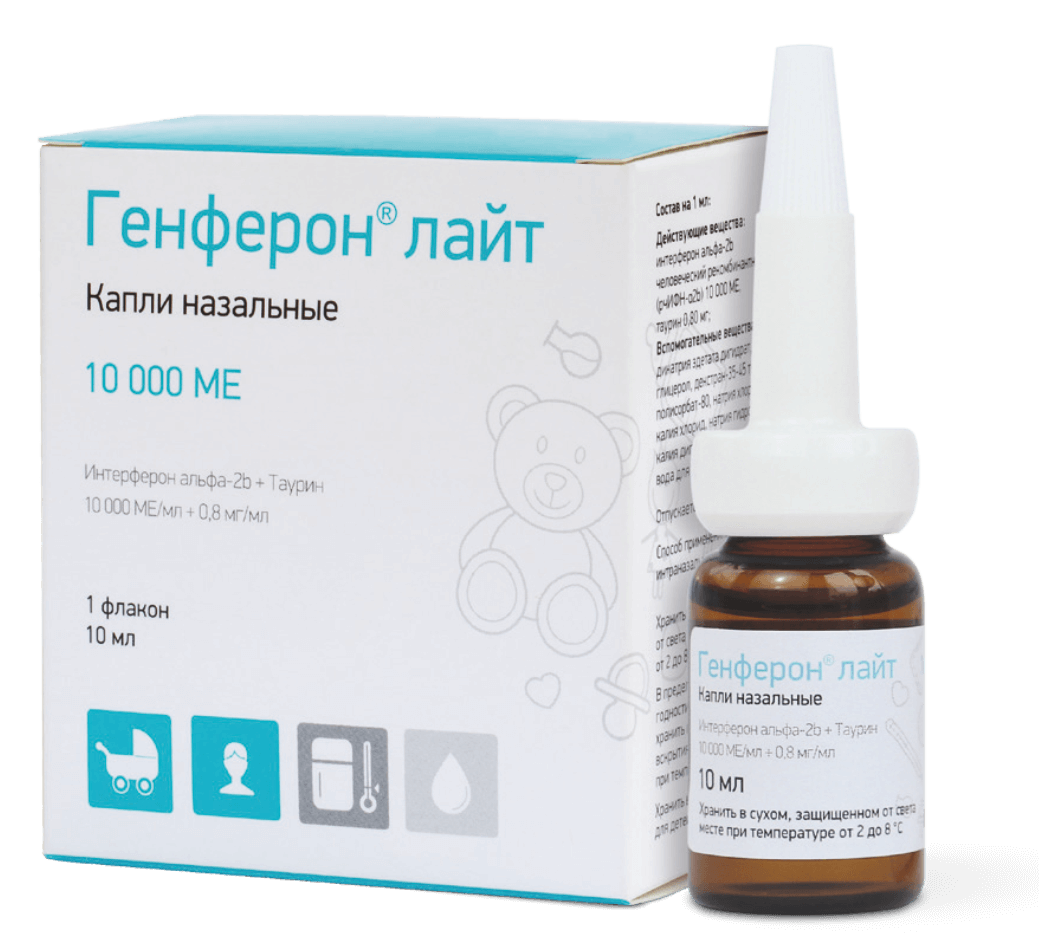 При первых признаках заболеванияГенферон® лайт закапывают в носв течение 5 дней.