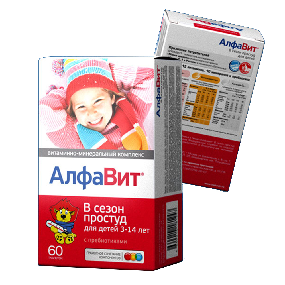 предназначен для широкой возрастной группы детей – от 3 до 11 лет. Имея полноценный витаминно-минеральный состав, обеспечивает нормальный рост и развитие ребенка, укрепляет его иммунитет. Помимо витаминов и минералов в состав комплекса включены пребиотики, которые также способствуют укреплению иммунитета, а еще нормализуют микрофлору кишечника, в том числе после приема антибиотиков. Если другие витаминные комплексы для детей, укрепляющие иммунитет, предназначены только для того, чтобы защитить от болезни, то действие компонентов АЛФАВИТА В сезон простуд для детей намного шире: их прием позволяет легче перенести заболевание, если ребенок все-таки заболел, ускоряет выздоровление, снижает вероятность осложнений или повторного заболевания.
