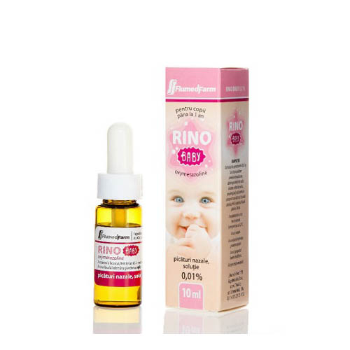 Дети до 1 года: младенцам в возрасте до 4 недель назначают по 1 капле Рино-Бэби 0,01% в каждый носовой ход 2-3 раза в день. С 5-ой недели жизни и до 1 года – по 1-2 капли в каждый носовой ход 2-3 раза в день. Доказана эффективность также и следующей процедуры: в зависимости от возраста 1-2 капли 0,01% раствора наносят на вату и протирают носовые ходы.