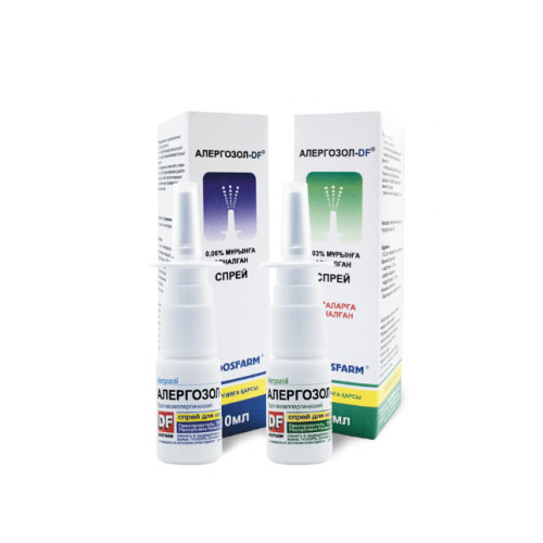 Алергозол-DF® - комбинированный препарат для местного применения, содержащий нафазолин и дифенгидрамин. Оказывает противоаллергическое и сосудосуживающее действие. Нафазолин при интраназальном применении способствует облегчению носового дыхания при ринитах. Способствует открытию и расширению выходных протоков придаточных пазух носа и освобождению Евстахиевых труб. Это способствует оттоку секрета и предотвращает осаждение бактерий на слизистой носа. Дифенгидрамин - блокатор Н1- гистаминовых рецепторов. Обладает выраженной противогистаминной активностью. Уменьшает или предупреждает вызываемое гистамином спазмы гладкой мускулатуры, повышение проницаемости капилляров, отек тканей, зуд и гиперемию. Так же оказывает местноанестезирующее действие, расслабляет гладкую мускулатуру в результате непосредственного спазмолитического влияния, блокирует в умеренной степени холинорецепторы вегетативных нервных узлов.
