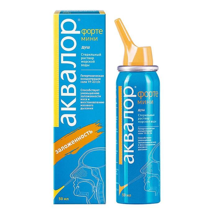 Средство для орошения и промывания полости носа для детей и взрослых «Аквалор форте мини» и «Аквалор форте» применяется для профилактики и комплексного лечения острых и хронических воспалительных заболеваний полости носа, околоносовых пазух и носоглотки (инфекционных, аллергических, атрофических), состояний после хирургических вмешательств в полости носа и околоносовых пазух, в период подъема простудных заболеваний.) Внешний вид и свойства: прозрачная бесцветная жидкость без запаха, с соленым вкусом, являющаяся стерильным раствором морской воды, с гипертонической концентрацией NaCl, спрей-душ Предназначено для удаления слизи, уменьшения выделений, размягчения и удаления корок, увлажнения слизистой оболочки полости носа. Оказывает благоприятное воздействие на слизистую оболочку полости носа и носоглотки, способствует уменьшению заложенности носа и восстановлению носового дыхания. После промывания полости носа Средством для орошения и промывания полости носа для детей и взрослых «Аквалор форте мини» и «Аквалор форте» повышается терапевтическая эффективность лекарственных средств, наносимых на слизистую оболочку полости носа, сокращается продолжительность респираторных заболеваний, снижается риск распространения инфекции в околоносовые пазухи и полость уха. Условия применения: для индивидуального применения и в условиях медицинских учреждений. Гипертонический раствор морской воды обеспечивает уменьшение отека слизистой оболочки полости носа, благодаря удалению избыточной жидкости из межклеточного пространства за счет разности осмотического давления. Беременность и кормление грудью не являются противопоказаниями.