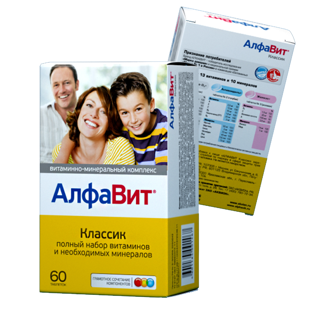 АЛФАВИТ Классик – первый в мире витаминно-минеральный комплекс, созданный с учетом научных рекомендаций по раздельному и совместному приему полезных веществ. АЛФАВИТ не просто содержит все необходимые витамины и минералы. Каждая таблетка включает лишь сочетающиеся компоненты. Это обеспечивает наиболее полное их усвоение и гипоаллергенность комплекса в целом. Каждая из трех таблеток АЛФАВИТА Классик – это самостоятельный сбалансированный витаминно-минеральный препарат, который оказывает определенное, четко выраженное воздействие на организм.