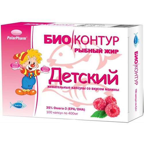 Рыбный жир детский "БиоКонтур" 400 мг №100 капсулы ( малина )