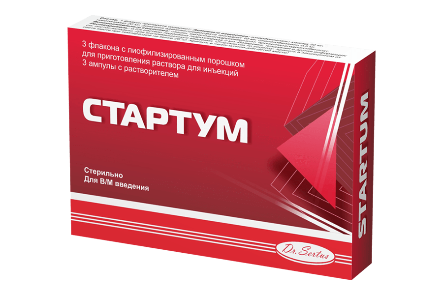 Стартум вводят внутримышечно по 1-2 флакона препарата один раз в сутки.