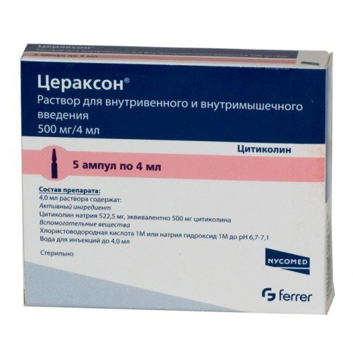 1 ампула (4 мл) содержит 500 мг или 1000 мг цитиколина;