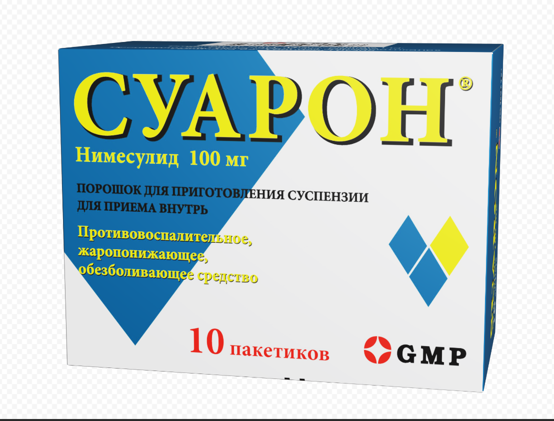 Одна таблетка Суарона содержит 100 мг активного вещества – нимесулида.