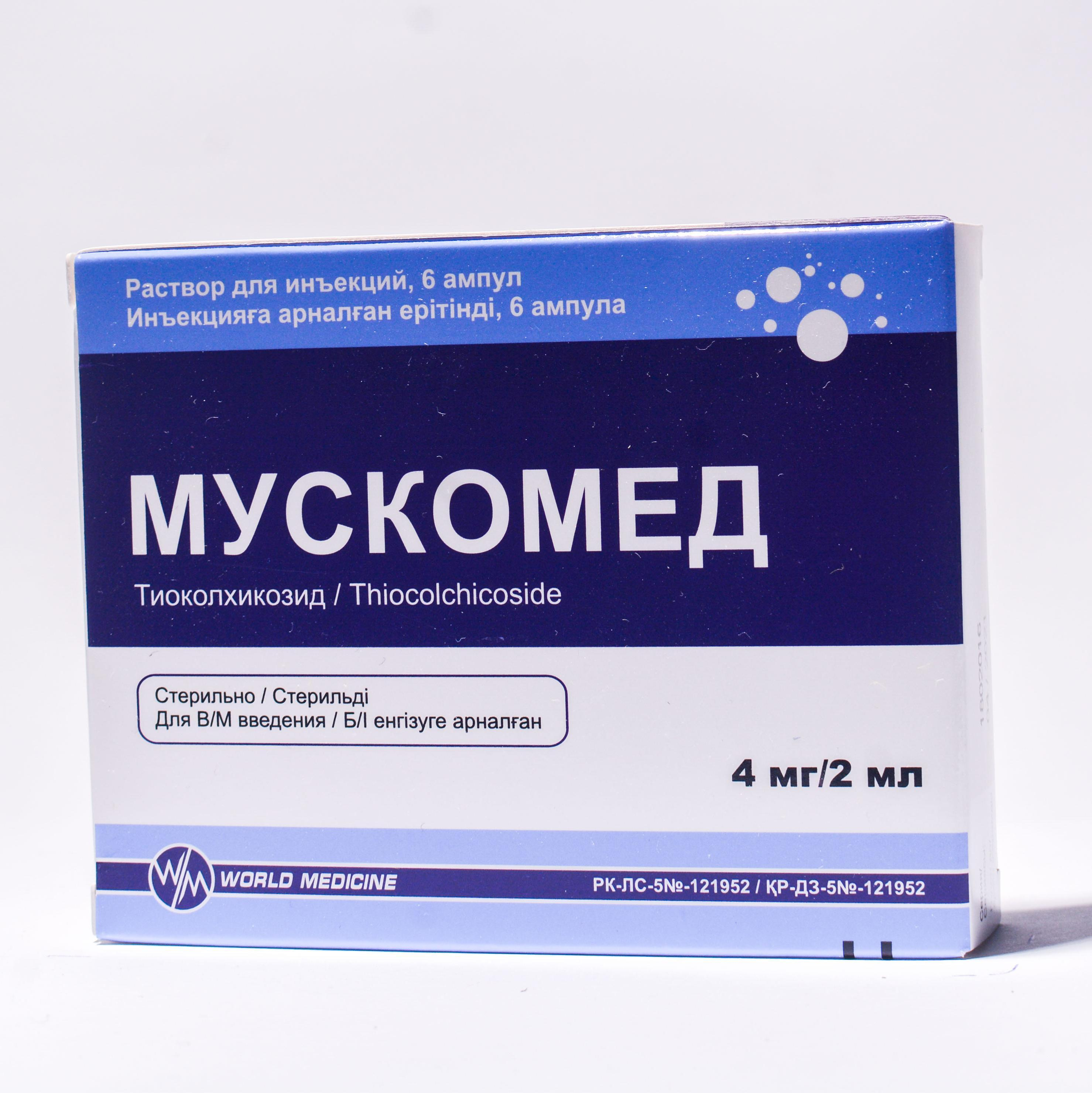 Мускомед является полусинтетическим веществом натурального псевдоалкалоида колхицина и серы. Оказывает миорелаксирующее действие (мышечный релаксант).