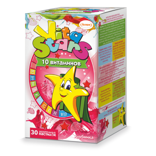 Мультивитаминный комплекс «VitaStars», сочетающий в себе 10 витаминов, позаботится о здоровье Вашего ребенка в периоды простудных заболеваний, умственных и физических нагрузок, дополнит рацион при несбалансированном питании, придаст силы и энергию для полноценного роста и развития.