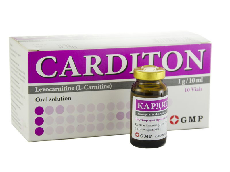 При остром инфаркте миокарда после применения левокарнитина в виде инъекций, далее переходят на пероральный прием Кардитона в дозе 2-6 г/сут.