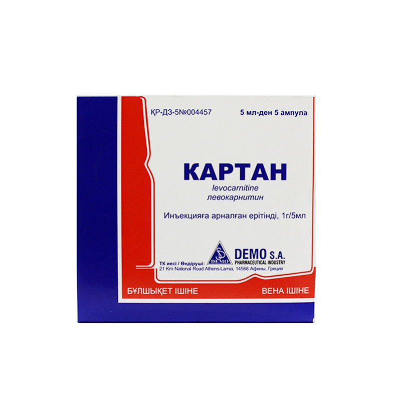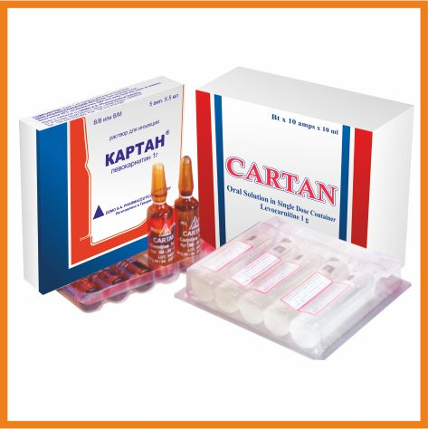 Длительный пероральный прием высоких доз Картана у пациентов с тяжелыми нарушениями функции почек или находящихся на диализе в терминальной стадии почечной недостаточности может вызвать повышение концентрации потенциально токсичных метаболитов, триметиламина (ТМА) и триметиламина-N-оксида (ТМАО), которые обычно выделяются с мочой. Внутривенное введение высоких доз не приводит к накоплению токсичных метаболитов.