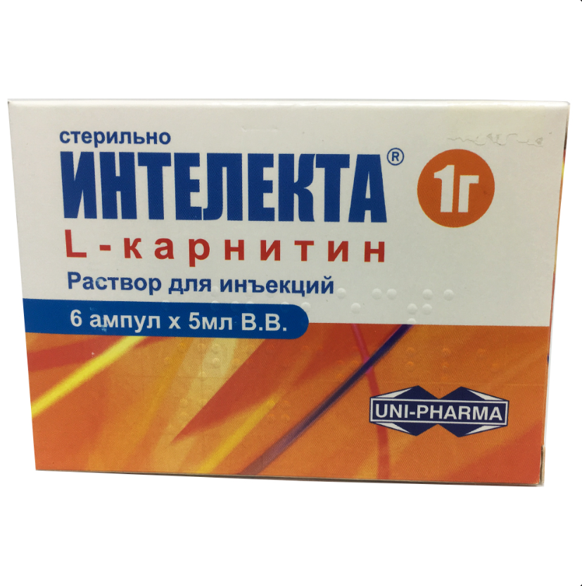 При первичном и вторичном дефиците карнитина рекомендуемые дозы зависят от нарушения обмена веществ и степени выраженности в период лечения. Препарат Интелекта, раствор для инъекций, вводят внутривенно медленно в течение 2-3 минут, при этом суточную дозу делят на 3-4 введения, или в виде инфузии: внутривенно капельно, медленно примерно 3 мл в минуту (или не более 60 капель в минуту), из расчета 30 мин на 100 мл и 1час 20 минут на 250 мл. Перед введением необходимую дозу препарата растворяют в 100 или 250 мл изотонического раствора натрия хлорида или 5 % раствора глюкозы.