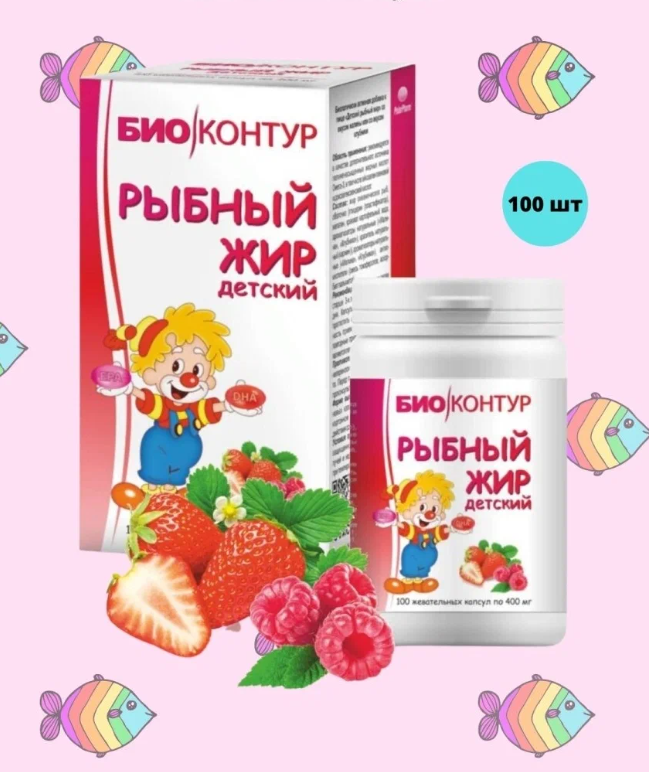 Рыбный жир Детский БиоКонтур 400 мг №100 капсулы ( клуб + малина )