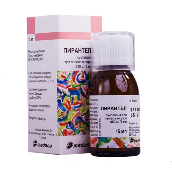 Пирантел 250 мг / 5 мл 15 мл суспензия