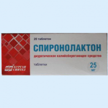 Действующее вещество: спиронолактон - 25 мг.
