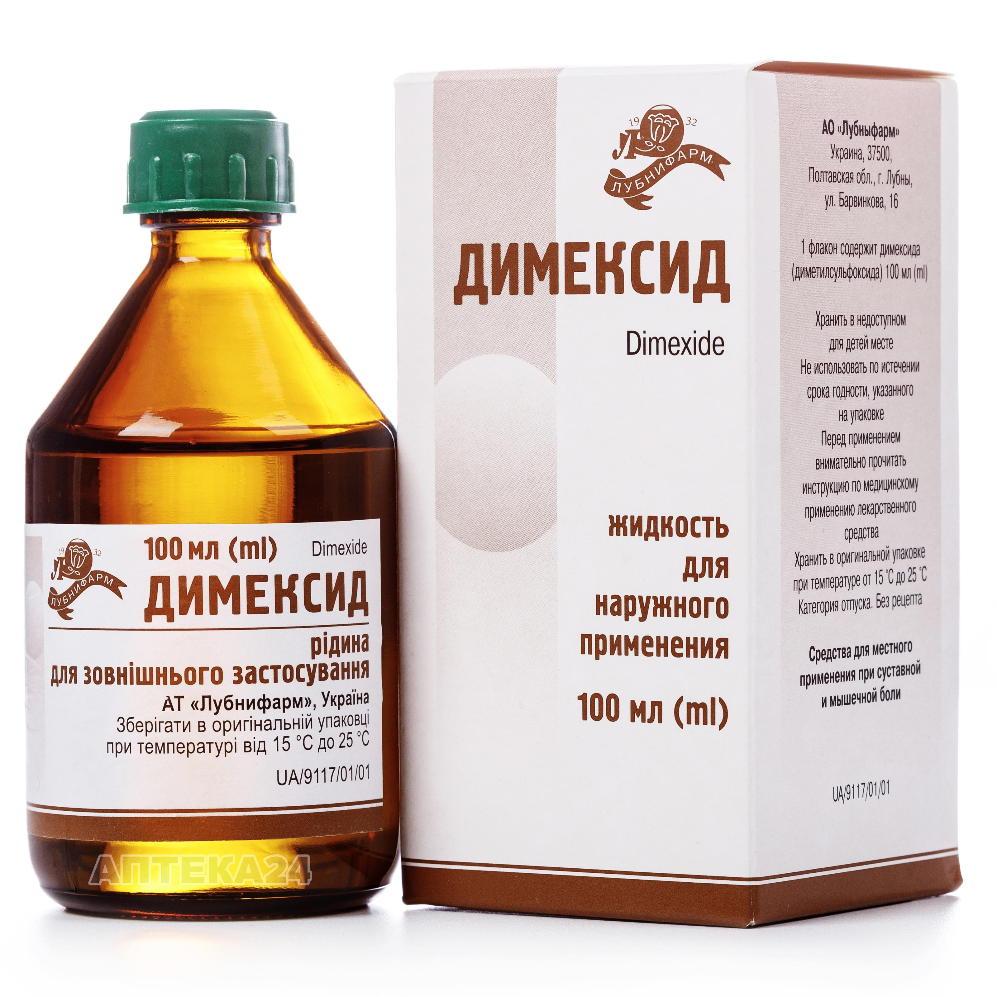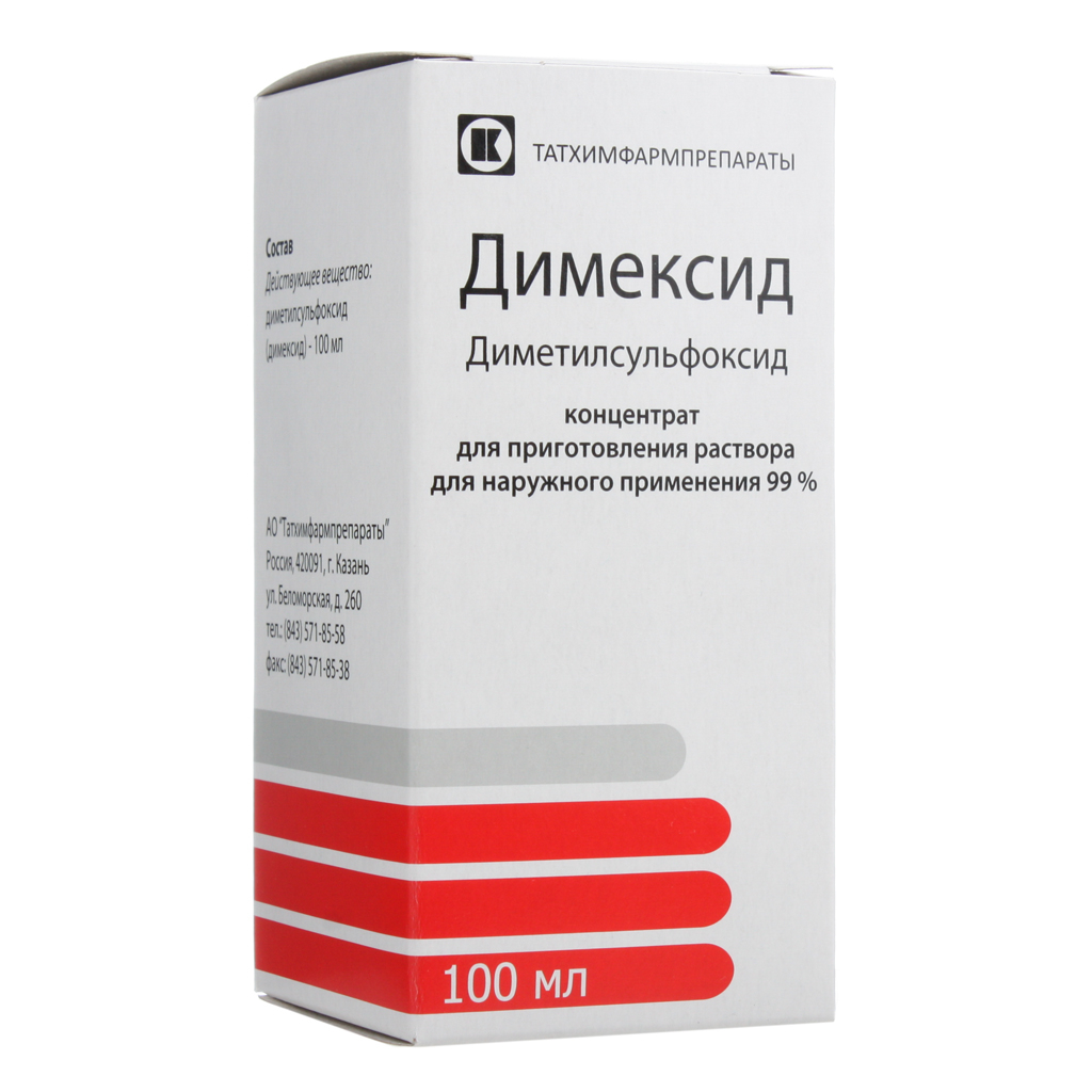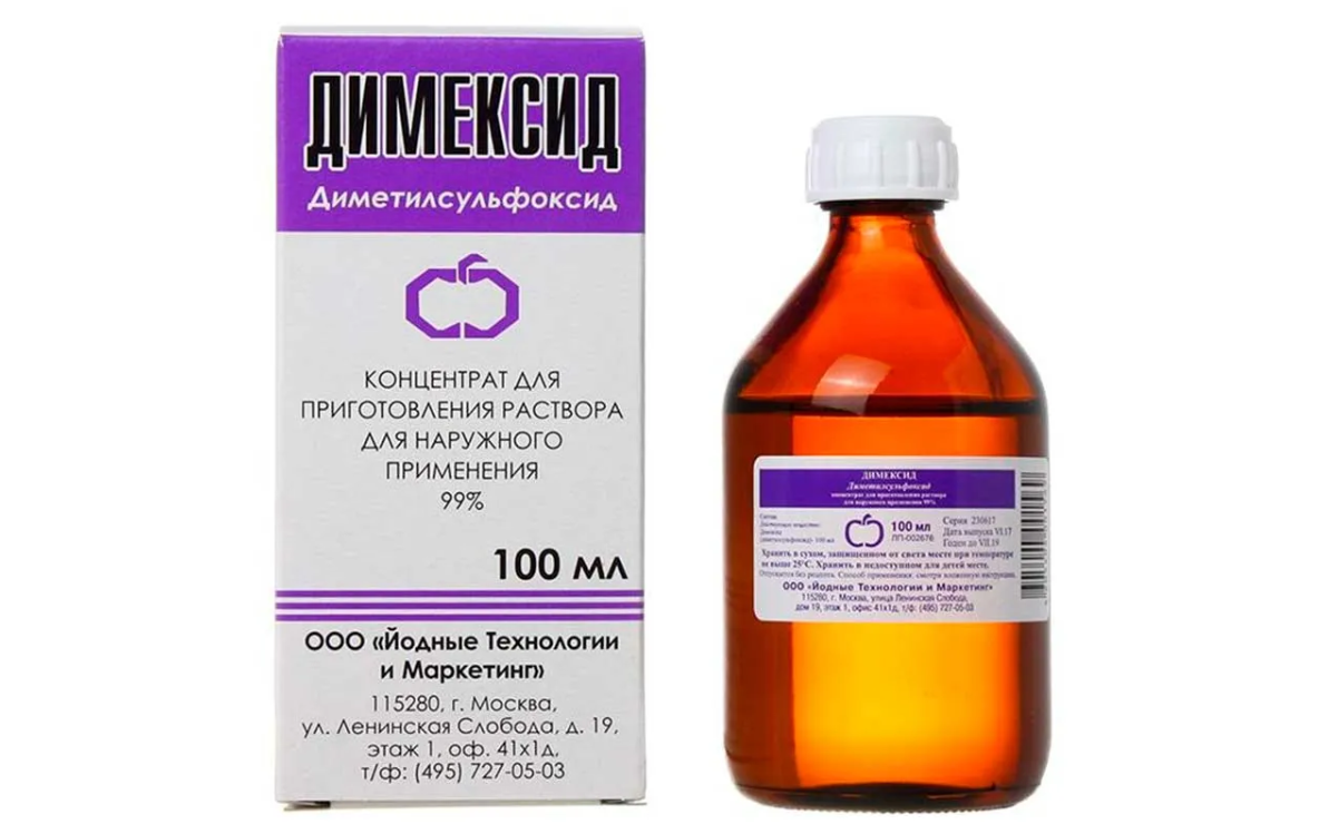 Действующее вещество: димексид (диметилсульфоксид) - 100 %