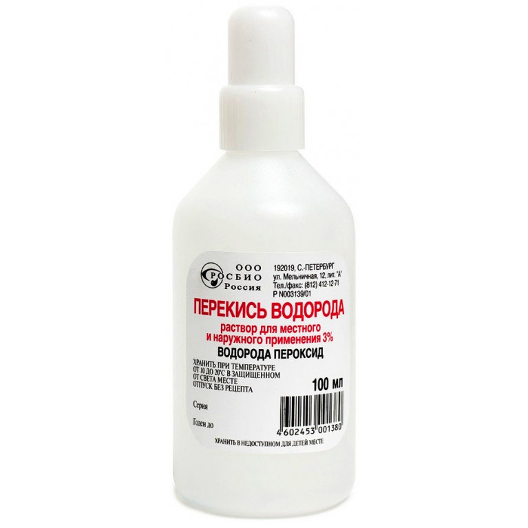 При контакте перекиси водорода с поврежденной кожей и слизистыми оболочками высвобождается активный кислород, при этом происходит механическое очищение и инактивация органических веществ (протеины, кровь, гной).
