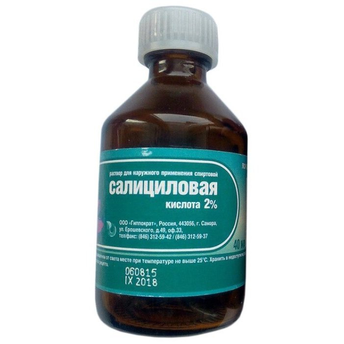 Тампоном, смоченным раствором салициловой кислоты, обрабатывают пораженные участки кожи 2-3 раза в сутки. При необходимости лечение повторяют. Курс лечения - не более 1нед.