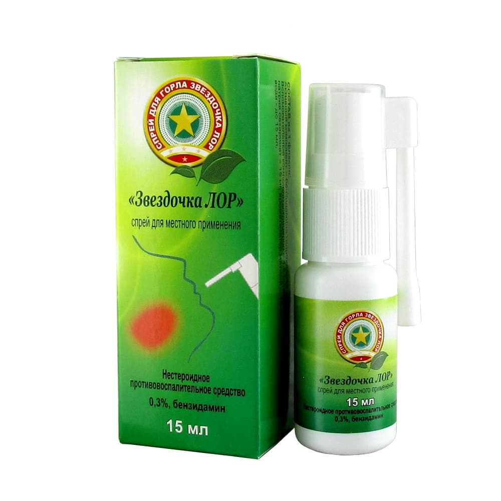 Спрей для местного применения (орошение полости рта и горла) 0,15% (0,255 мг/доза).