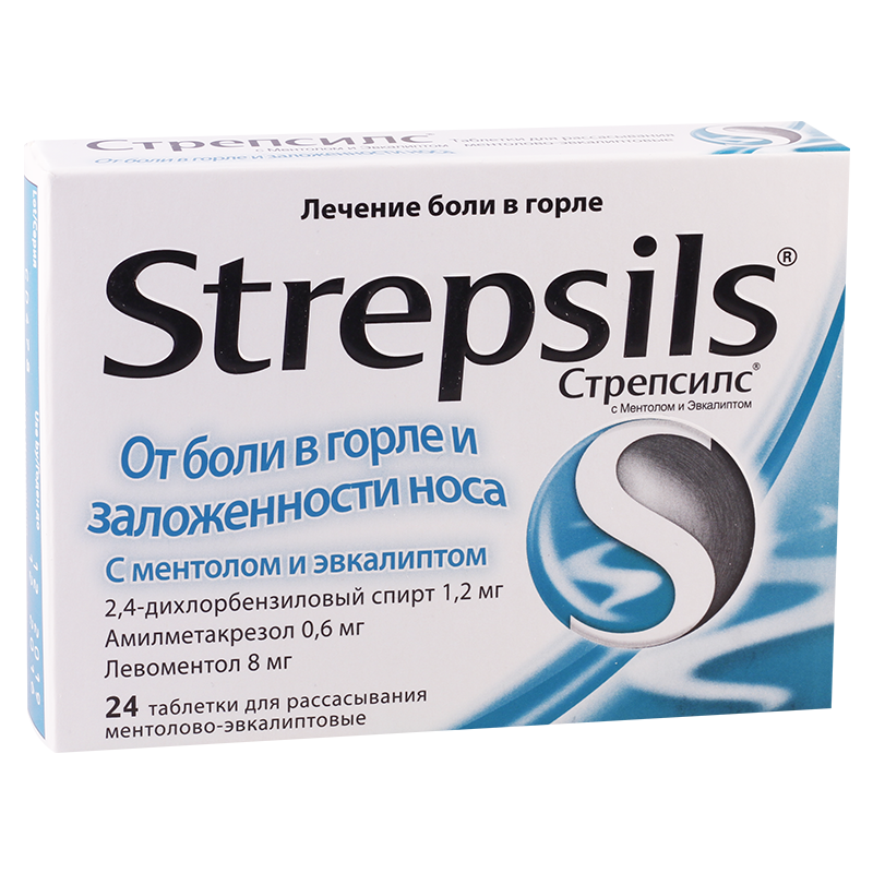 действующие вещества: амилметакрезол 0,6 мг, 2,4-дихлорбензиловый спирт 1,2 мг, левоментол 8 мг;