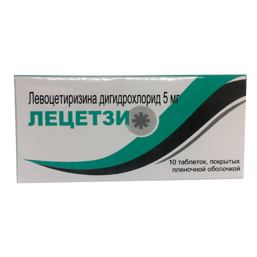 Лецетзи меняются линейно и практически не отличаются от фармакокинетики цетиризина. После приема внутрь Лецетзи быстро всасывается из ЖКТ. Прием пищи не влияет на степень абсорбции, скорость ее уменьшается. После однократного приема внутрь в терапевтической дозе C в сыворотке достигается через 0.9 ч и составляет 207 нг/мл. Биодоступность составляет 97,03%. Связывание Лецетзи с белками плазмы составляет 90%. V составляет 0.3 л/кг. Менее 14% метаболизируется в печени путем O-дезалкилирования с образованием фармакологически неактивного метаболита, в отличие от других блокаторов гистаминовых H -рецепторов.