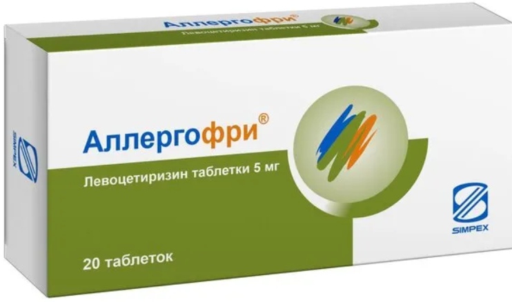 Активное вещество препарата Аллергофри – левоцетиризин, R-энантиомер цетиризина, относится к группе конкурентных антагонистов гистамина, блокирует Н1-гистаминовые рецепторы. Сродство к Н1-рецепторам у левоцетиризина в 2 раза выше, чем у цетиризина. Аллергофри оказывает влияние на гистаминозависимую стадию аллергических реакций, а также уменьшает миграцию эозинофилов, уменьшает сосудистую проницаемость, ограничивает высвобождение медиаторов воспаления. Аллергофри предупреждает развитие и облегчает течение аллергических реакций, обладает противоэкссудативным, противозудным действием, практически не оказывает антихолинергического и антисеротонинового действия. В терапевтических дозах практически не оказывает седативного эффекта. Действие препарата начинается через 12 мин после приема однократной дозы у 50 % больных, через 1 час – у 95 % и сохраняется в течение 24 часов