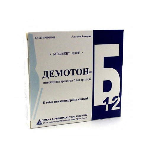 Демотон-В12 – комбинация нейротропных витаминов В1, В6 и В12. Препарат демонстрирует более высокий фармакологический эффект, чем прием данных витаминов по отдельности. Нейротропные витамины группы В оказывают благоприятное воздействие на воспалительные и дегенеративные заболевания нервной системы и двигательного аппарата, в высоких дозах обладают анальгетическим свойством, способствуют усилению кровотока и нормализуют работу нервной системы и процесс кроветворения. Витамин В1 (тиамина гидрохлорид) в организме человека в результате процессов фосфорилирования превращается в кокарбоксилазу, которая является коферментом многих ферментных реакций. Витамин В1 оказывает влияние на проведение нервного импульса в синапсах. Витамин В6 (пиридоксин) играет важную роль в обмене веществ и необходим для нормального функционирования центральной и периферической нервной системы. Витамин В12 (цианокобаламин) участвует в процессах трансметилирования, переносе водорода, образовании метионина, нуклеиновых кислот, холина, креатина. Витамин В12 оказывает благоприятное влияние на функцию нервной системы, улучшает работу мозга, участвует в образовании фермента, необходимого для продукции липопротеида в миелиновой ткани.