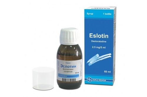 Эслотин оказывает антигистаминное, противоаллергическое и противовоспалительное действие, не вызывает сонливости. При приеме внутрь дезлоратадин (первичный активный метаболит лоратадина) селективно блокирует периферические гистаминовые Н1-рецепторы. Подавляет каскад цитостатических реакций: выделение провоспалительных цитокинов, в т.ч. интерлейкина-4 (ИЛ-4), интерлейкина-6 (ИЛ-6), интерлейкина-8 (ИЛ-8), интерлейкина-13 (ИЛ-13), провоспалительных хемокинов типа RANTES, продукцию супероксидных анионов активированными полиморфно-ядерными нейтрофилами, адгезию и хемотаксис эозинофилов, экспрессию молекул адгезии, в т.ч. Р-селектина, IgE-опосредованное выделение гистамина, простагландина D2 и лейкотриена С4.