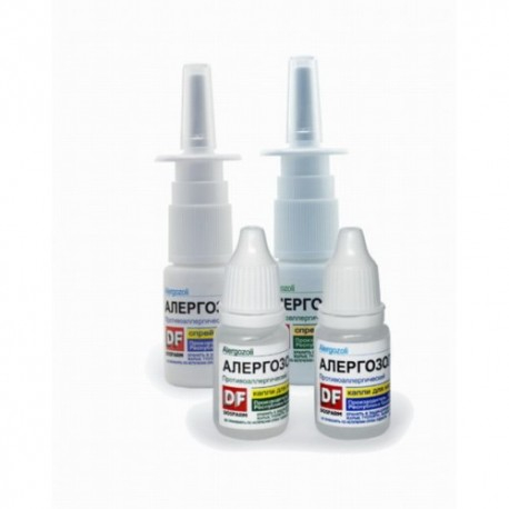 Алергозол-DF® оказывает противоаллергическое и сосудосуживающее действие благодаря содержанию нафазолина и димедрола. Димедрол (дифенгидрамин), входящий в состав препарата - блокатор гистаминовых H1-рецепторов. Обладает Н1-блокирующей активностью, уменьшает или предупреждает вызываемые гистамином спазмы гладкой мускулатуры, повышение проницаемости капилляров, отек тканей, зуд, гиперемию.