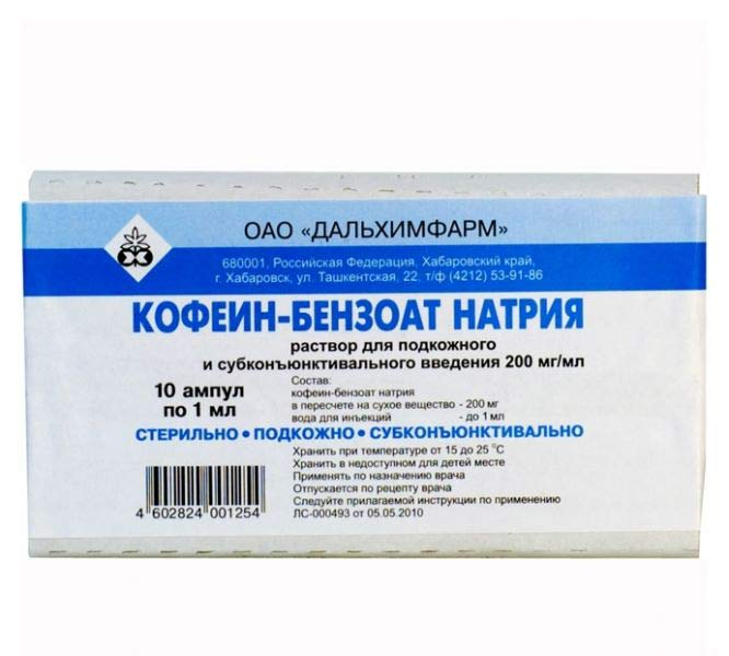Кофеина-бензоат натрия 20% 1 мл №10 р-р для инъекций