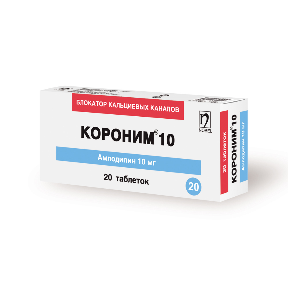 КОРОНИМ – является блокатором кальциевого канала продолжительного действия, который ингибирует трансмембранный перенос ионов кальция в гладкую мускулатуру сосудов и кардиомиоциты. Амлодипин избирательно блокирует перенос ионов кальция в клетки. Больше воздействует на гладкие мышцы сосудов, чем на кардиомиоциты, вследствие чего, не оказывает значимого влияния на сердечный выброс и на ударный объем. Амлодипин не оказывает влияния на уровень кальция в плазме крови. Как периферический вазодилататор, амлодипин влияет непосредственно на гладкие мышцы сосудов, вследствие чего уменьшается сопротивление периферических сосудов и снижается артериальное давление, вследствие чего потребность кардиомиоцитов в кислороде снижается. Антигипертензивный эффект сохраняется примерно 24 часа. Амлодипин не изменяет функцию синоатриального узла или атриовентрикулярную проводимость. Несмотря на примерно одинаковые изменения диастолического давления у молодых и пожилых пациентов, систолическое давление значительнее снижалось у пожилых.