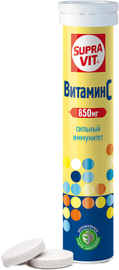 Суправит Витамин 550 мг в форме шипучих таблеток содержит аскорбиновую кислоту. Одна из её важных функций - укрепление защитных сил организма