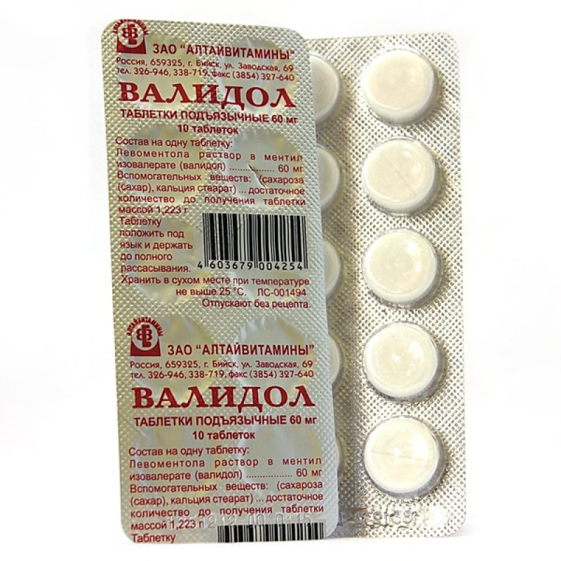 Действующее вещество: левоментола раствор в ментил изовалерате (валидол) - 60 мг. Вспомогательные вещества: сахароза, магния стеарат.