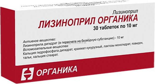 Действующее вещество: лизиноприла дигидрат - 10,89 мг в пересчете на лизиноприл - 10,00 мг.