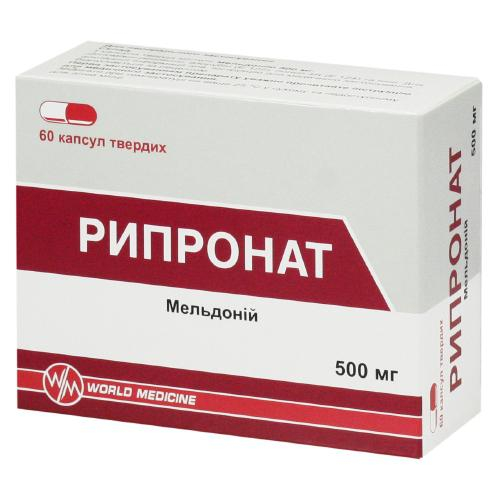 В результате угнетения активности бутиробетаингидроксилазы мельдоний снижает биосинтез карнитина и таким образом тормозит транспорт длинноцепочечных жирных кислот через мембрану клеток, предотвращая накопление в клетках активированных производных неокисленных жирных кислот – ацилкарнитина и ацилкоэнзима А, которые обладают выраженными свойствами детергентов. В условиях ишемии Рипронат восстанавливает равновесие между доставкой и потреблением кислорода в клетках, устраняет нарушения транспорта АТФ, одновременно активируя альтернативный источник энергии – гликолиз, который осуществляется без дополнительного потребления кислорода.