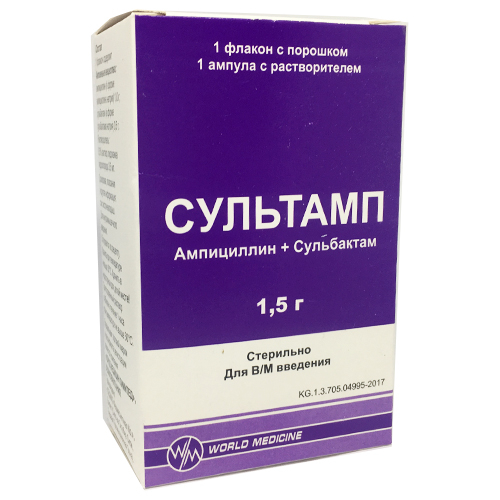- Действующее вещество: Ампициллин + Сульбактам