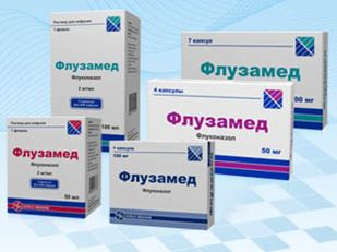 Флузамед — противогрибковое средство группы триазола. Флуконазол — активное вещество препарата — является мощным селективным ингибитором синтеза стеролов в мембранах клетки грибов. Механизм действия обусловлен блокадой цитохрома Р450. Флуконазол блокирует превращение ланостерола клеток грибов в эргостерол увеличивает проницаемость клеточной мембраны, нарушает ее рост и репликацию. Являясь высокоизбирательным для цитохрома P450 грибов, практически не угнетает эти ферменты в организме человека (в сравнении с итраконазолом, клотримазолом, эконазолом и кетоконазолом в меньшей степени подавляет зависимые от цитохрома P450 окислительные процессы в микросомах печени человека). Не обладает антиадрогенной активностью.