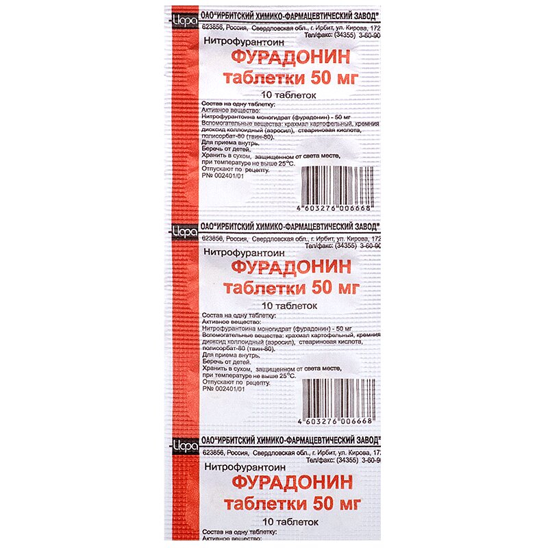 Действующее вещество: нитрофурантоин (фурадонин) - 50 мг.